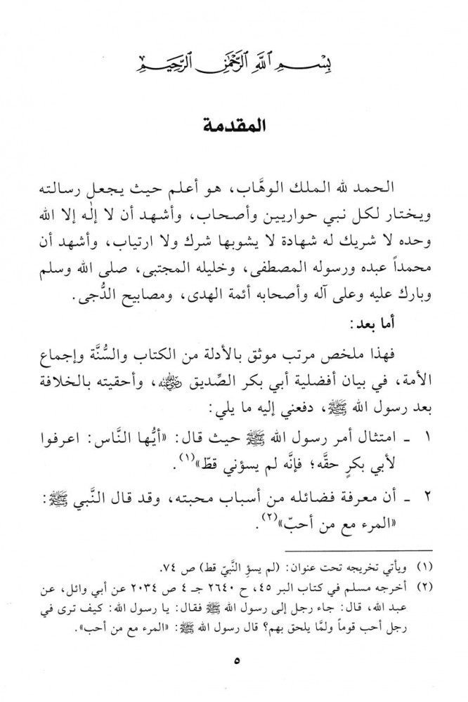 يحوي على ملخص ـ مرتب موثق بالأدلة من الكتاب والسنة وإجماع الأمة في بيان أفضلية أبي بكر الصديق رضي الله عنه، وأحقيته بالخلافة بعد رسول الله صلى الله عليه وسلم ـ