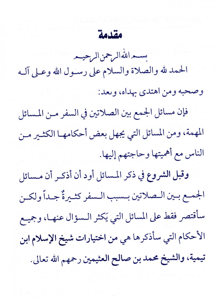 يحوي على أحكام الجمع بين الصلاتين بعذر السفر.