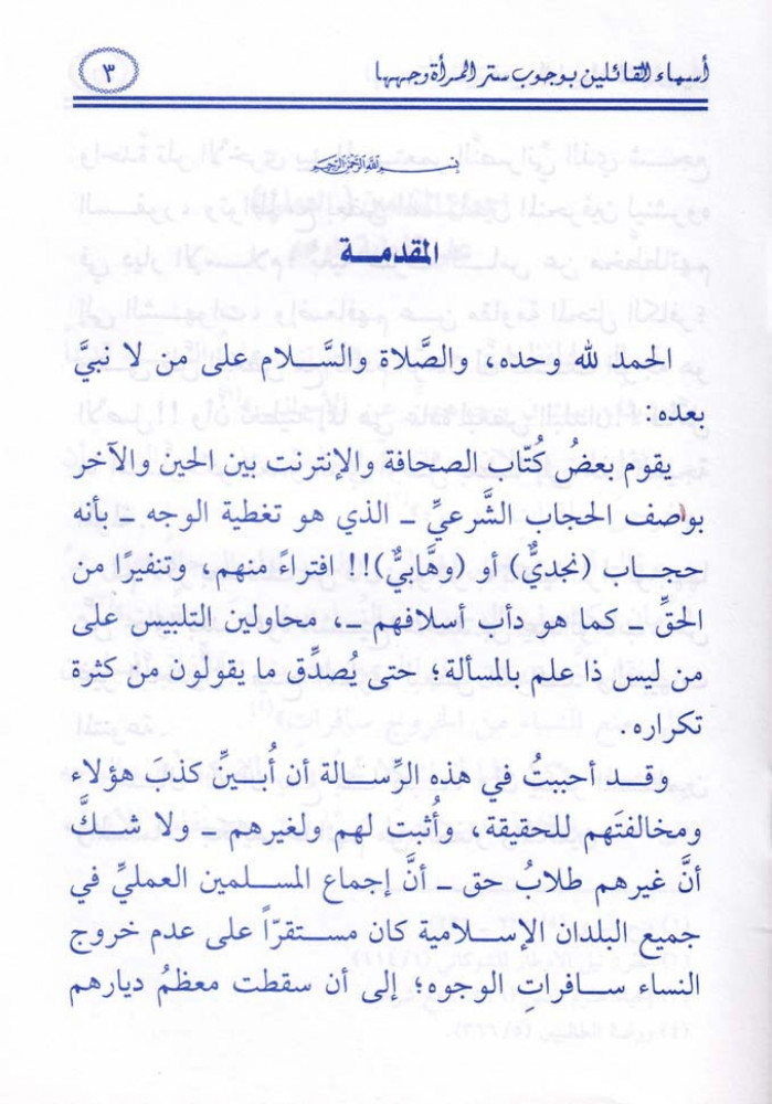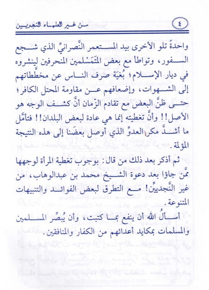 يحوي على أسماء القائلين بوجوب ستر المرأة وجهها من غير العلماء النجديين.