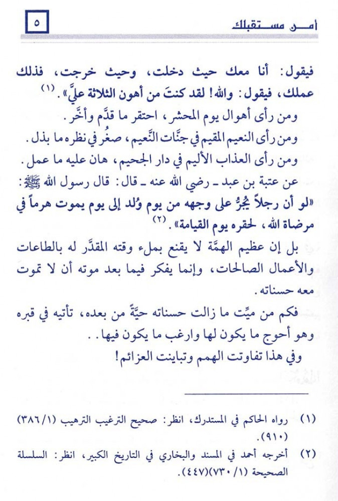فالعمر ميدان العمل، والدينا مزرعة الآخرة، والعاجلة معبر للآجلة، والموفق المسدد من يشغل كل لحظة في عمره بطاعة ربه، حتى إذا انتهت حياته، وأزف وقت رحيله، وإذا به قد أخرج ما جعبته، وبذل ما في وسعه، واستفرغ كل طاقته، في كل عمل صالح قدر عليه وتمكن منه.