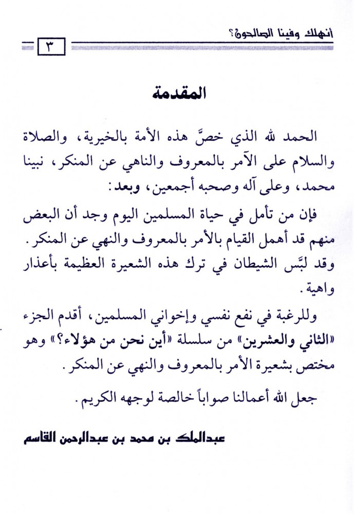 فإن من تأمل في حياة المسلمين اليوم وجد أن البعض منهم قد أهمل القيام بالأمر بالمعروف والنهي عن المنكر. وقد لبس الشيطان في ترك هذه الشعيرة العظيمة بأعذار واهية. مختص بشعيرة الأمر بالمعروف والنهي عن المنكر.