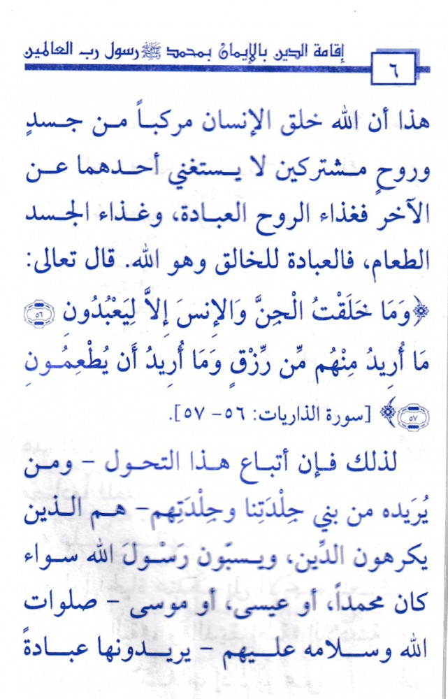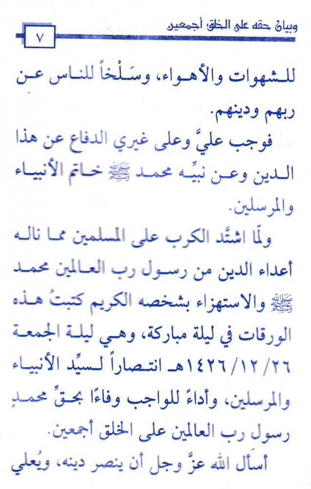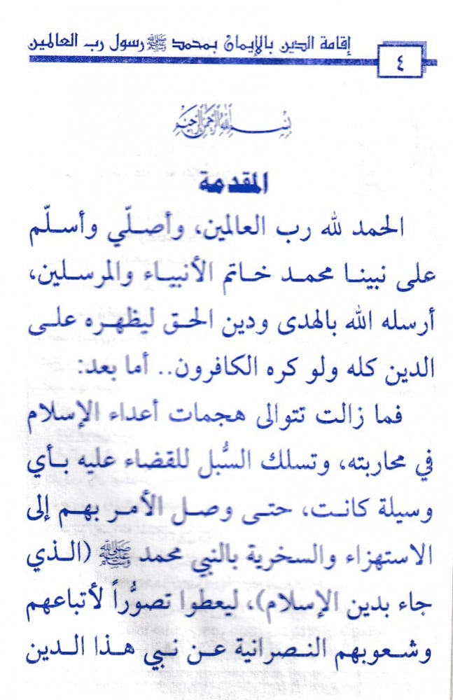 يحوي على إقامة الدين بالإيمان بمحمد صلى الله عليه وسلم رسول رب العالمين وبيان حقه على الخلق أجمعين.