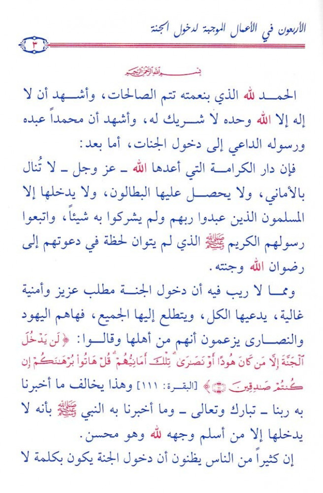 يحوي على الأربعون في الأعمال الموجبة لدخول الجنة.
