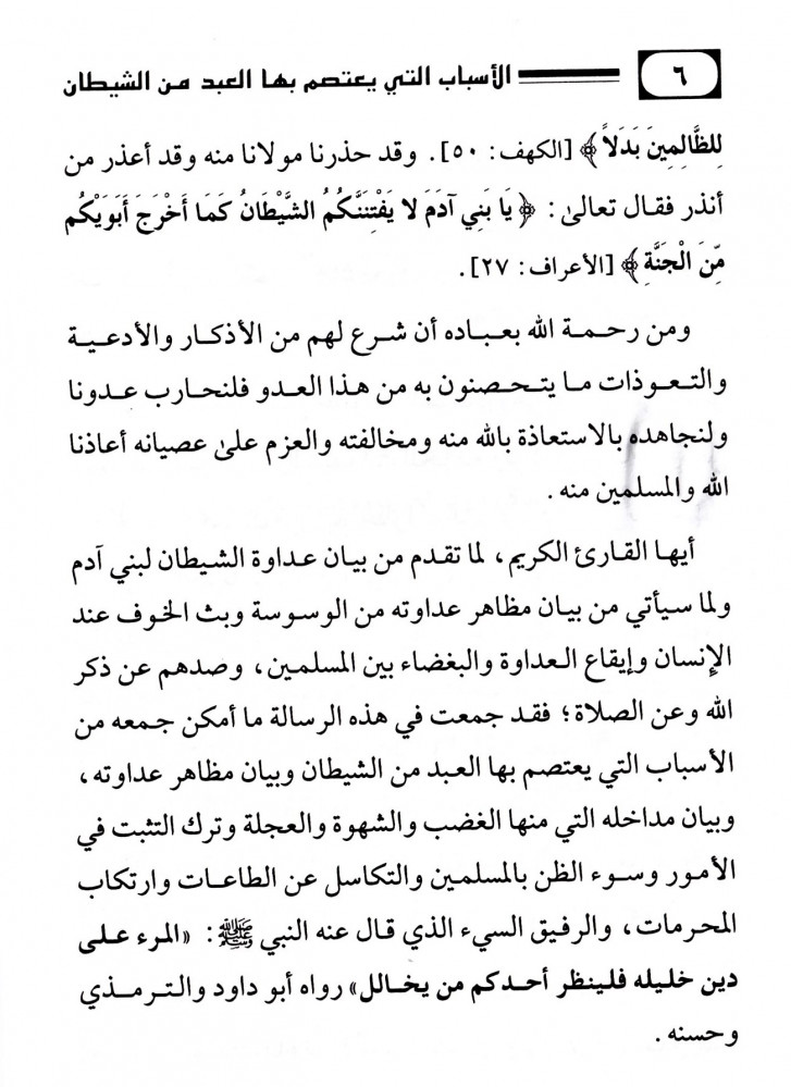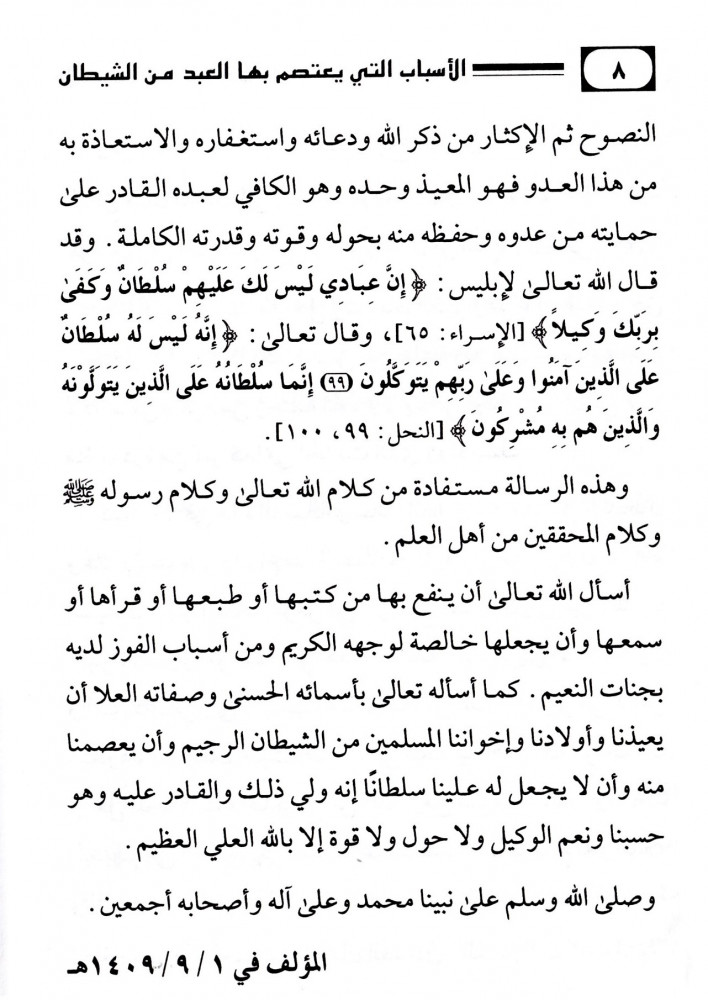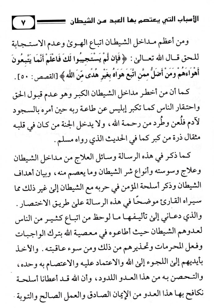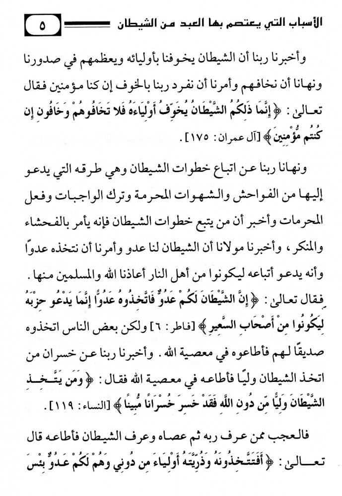 يحوي على الأسباب التي يعتصم بها العبد من الشيطان.