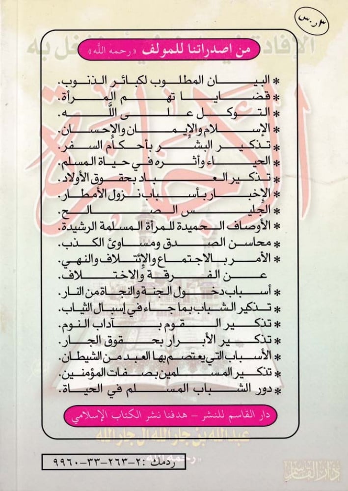 يحوي على الإفادة في ما ينبغي أن نشغل به الأجازة.