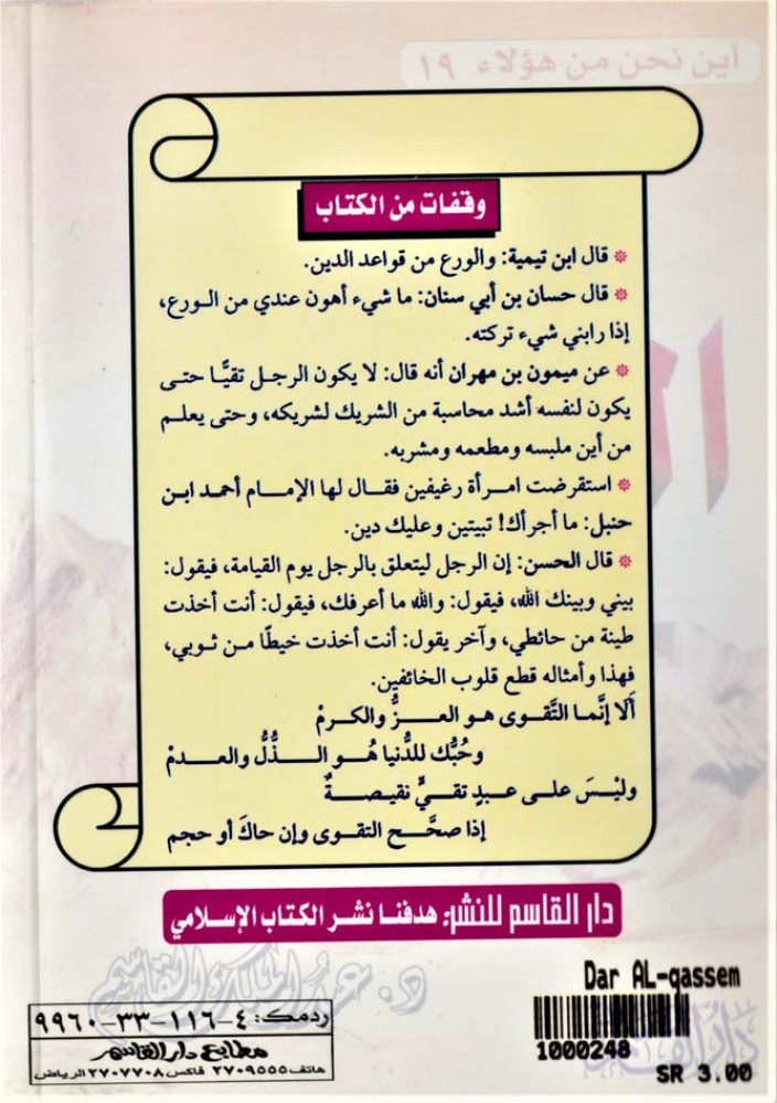 فإن أمر الورع قد ندر وقل في هذا الزمن.. لما في النفس من تقصير وتفريط ولكن حسبها موعظة تقع في القلب مسلم ينتفع بها.