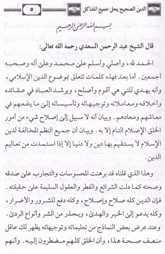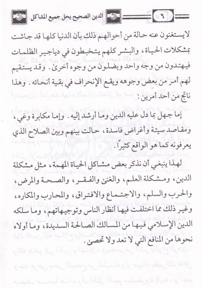 يحوي على الدين الصحيح يحل جميع المشاكل.