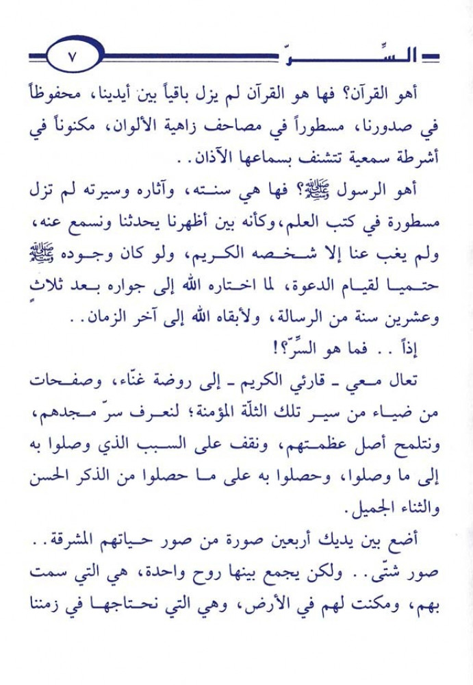 يحوي على روضة غناء، وصفحات من ضياء من سير تلك الثلة المؤمنة؛ لنعرف سر مجدهم ونتلمح أصل عظمتهم، ونقف على السبب الذي وصلوا به إلى ما وصلوا، وحصلوا به على ما حصلوا من الذكر الحسن والثناء الجميل، بين يديك أربعين صورة من صور حياتهم المشرقة.