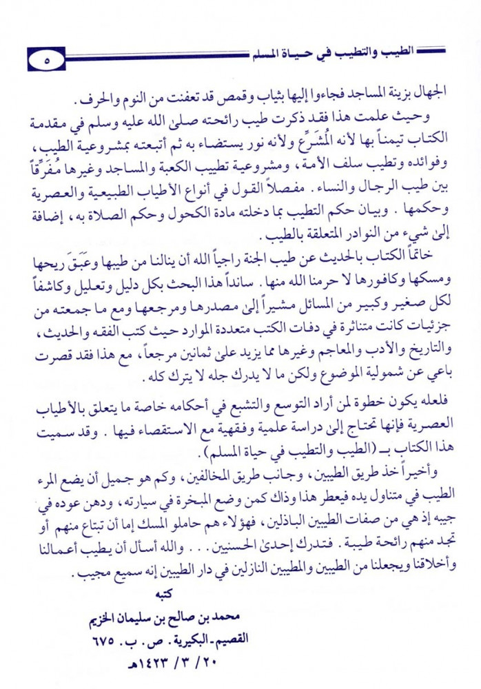 هو جميل أن يضع المرء الطيب في متناول يده فيعطر هذا وذاك كمن وضع المبخرة في سيارته، ودهن عوده في جيبه إذ هي من صفات الطيبين الباذلين، فهؤلاء هم حاملو المسك إما أن تبتاع منهم أو تجد منهم رائحة طيبة. فتدرك إحدى الحسنين.