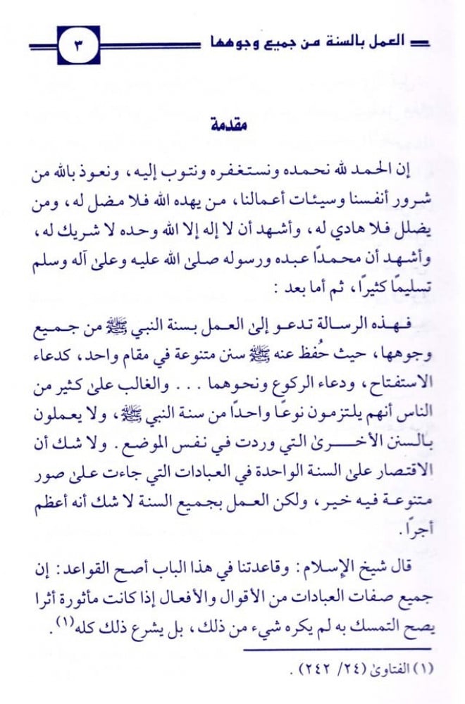 وهذا الجهد الذي بين أيديكم لا على سبيل الحصر للسنن المتنوعة الواردة في العبادة الواحدة، ولكنه دليل يرشد محبي سنة النبي صلى الله عليه وسلم إلى غيرها من السنن التي لم أتمكن من إدراجها في هذه الرسالة.