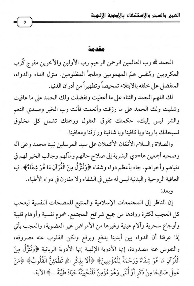 يحوي على الاستشفاء بالأدوية الإلهية من العين والسحر، مع بيان الرقية الشرعية.