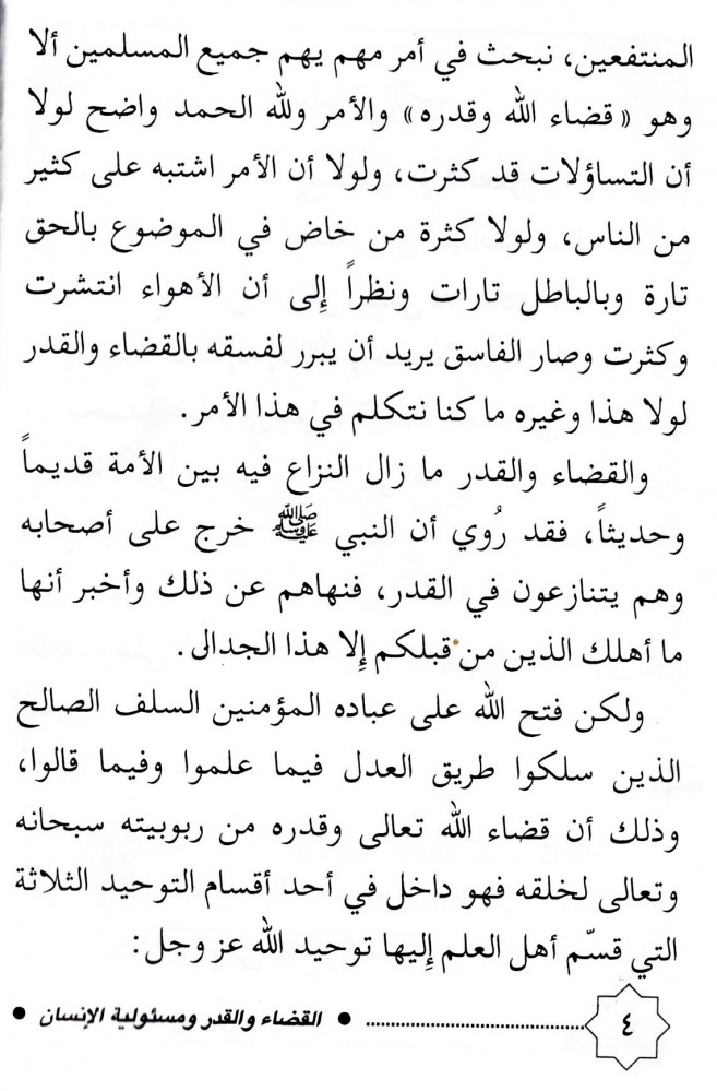 يحوي على قضاء الله تعالى وقدره من ربوبيته سبحانه وتعالى لخلقه فهو داخل في أحد أقسام التوحيد الثلاثة التي قسم أهل العلم إليها توحيد الله عزوجل.
