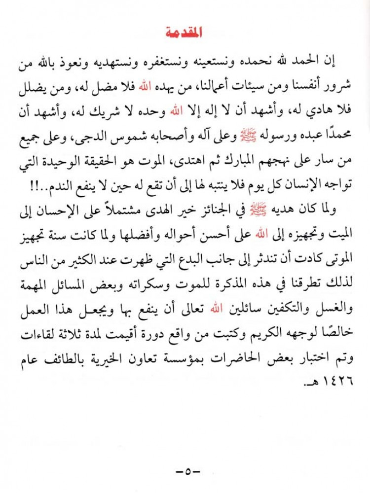 يحوي على تذكرة ما يجب وما لا يجب في تجهيز الموتى.