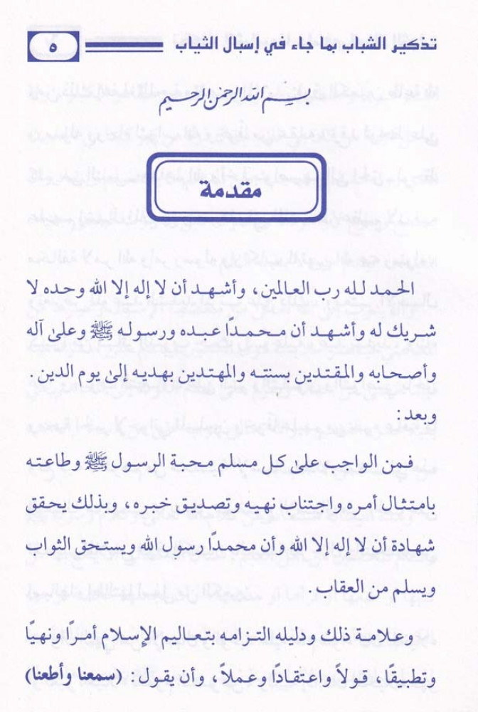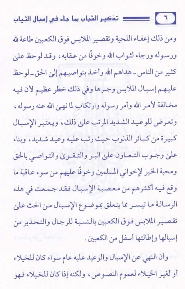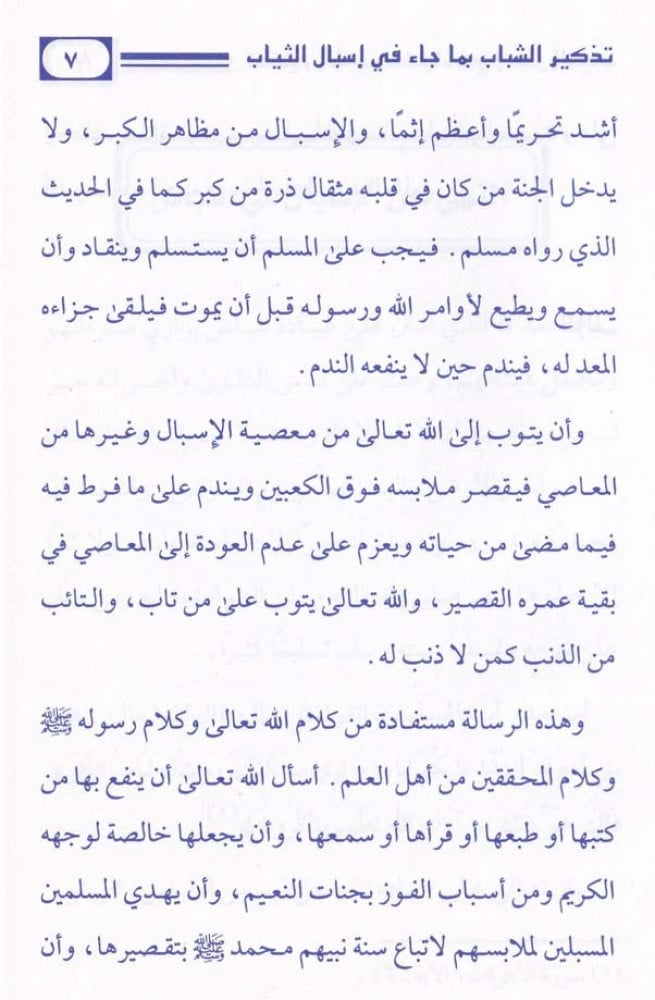 يحوي على تذكير الشباب بما جاء في إسبال الثياب، من وعيد شديد.