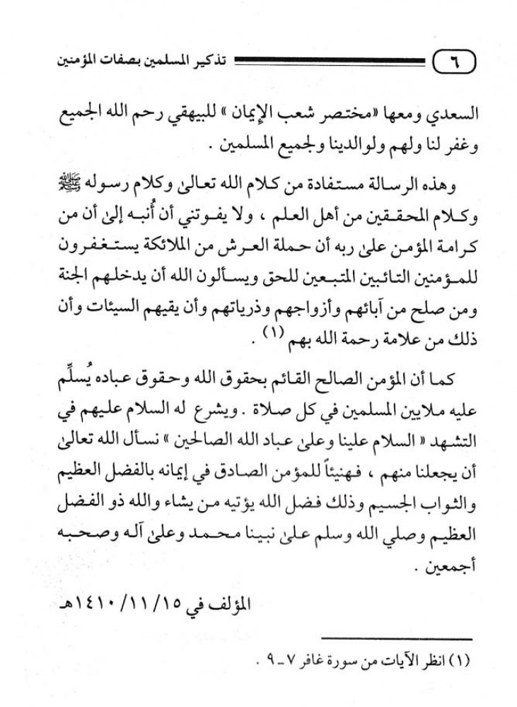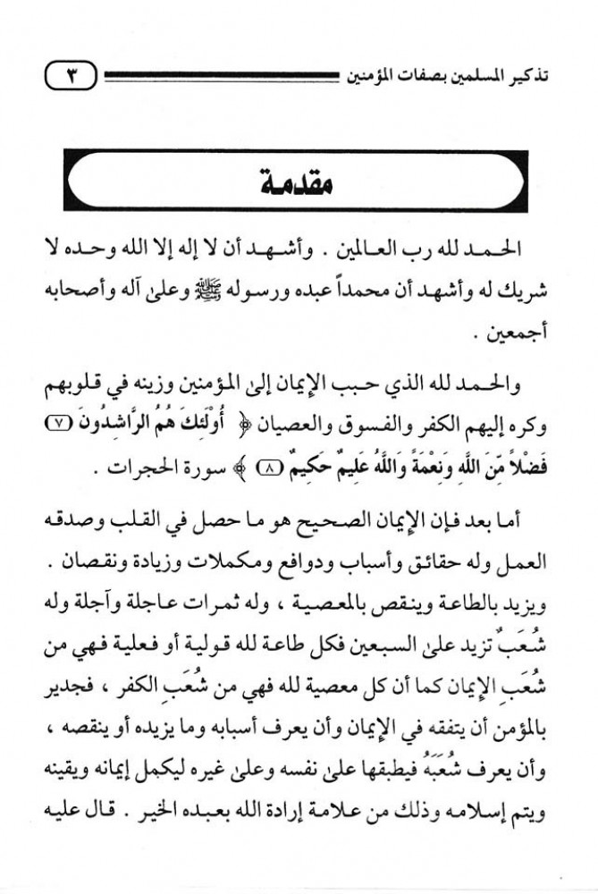 تذكير المسلمين بصفات المؤمنين