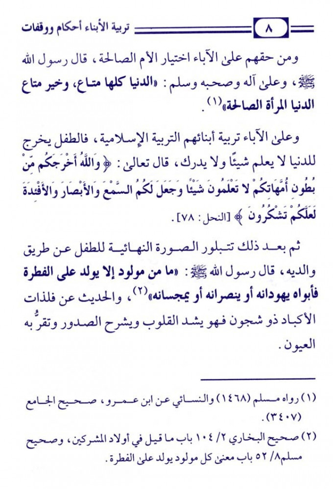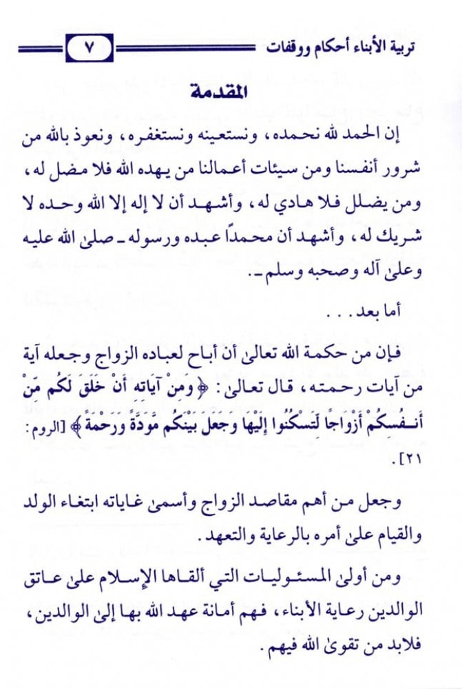 يحوي على أحكام ووقفات في تربية الأبناء.