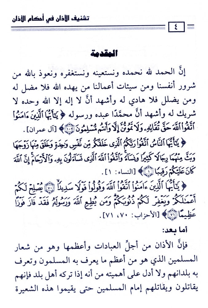 يحتوى تصحيح الأخطاء التي تبطل الأذان فضلاً عن كونها تنقص من أجره الشي الكثير وهذه العبادة لا ينبغي للمسلم أن يهمل أحكامها لأنها مرتبطة بأعظم ركن من أركان الإسلام بعد الشهادتين ألا وهي الصلاة، إذا نظرت في حال بعض المسلمين وجدت أن الكثير وقد دخل الوقت منذ زمن ولكن لا تجد منهم من يؤذن إما جهلاً، وإما خوفا أو حياء نابعا من جهل وعدم ثقة بالنفس.