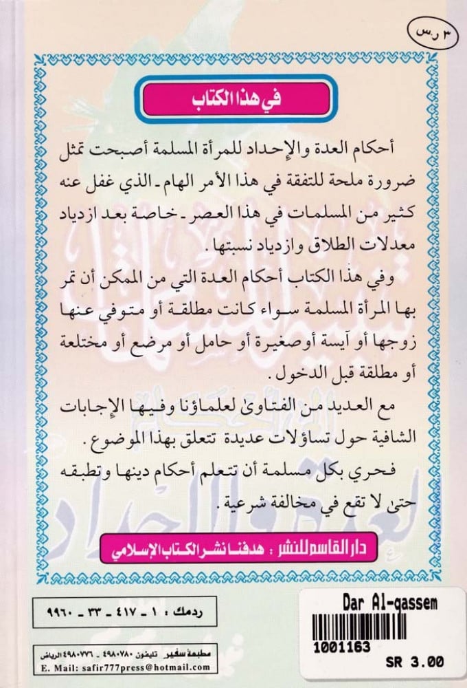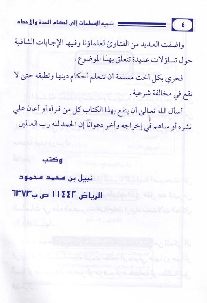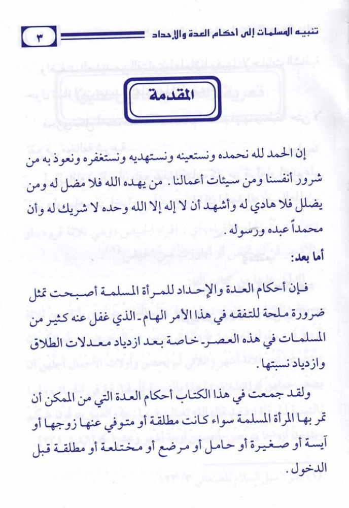 يحوي على تنبية المسلمات إلى أحكام العدة والإحداد.