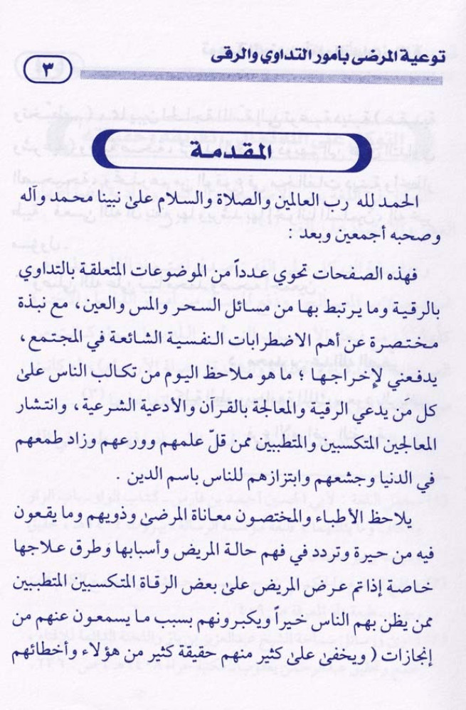 يحوي على توعية المرضى بأمور التداوي والرقى.