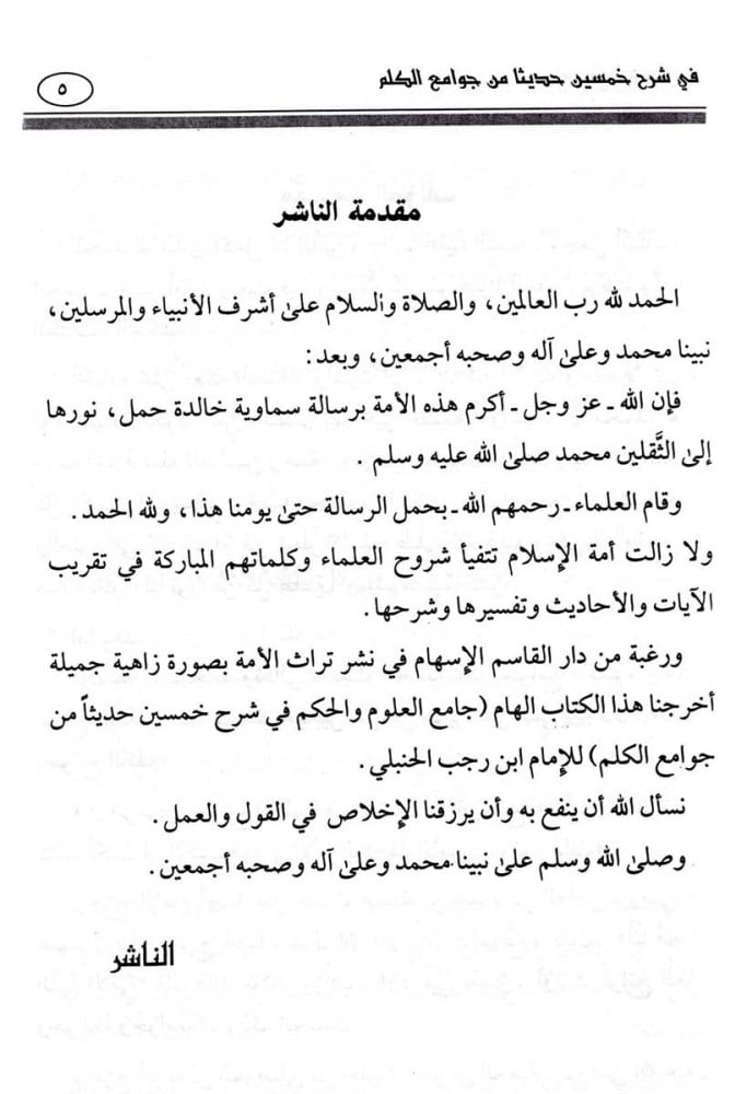 جامع العلوم والحكم في خمسين حديثاً من جوامع الكلم 1/2