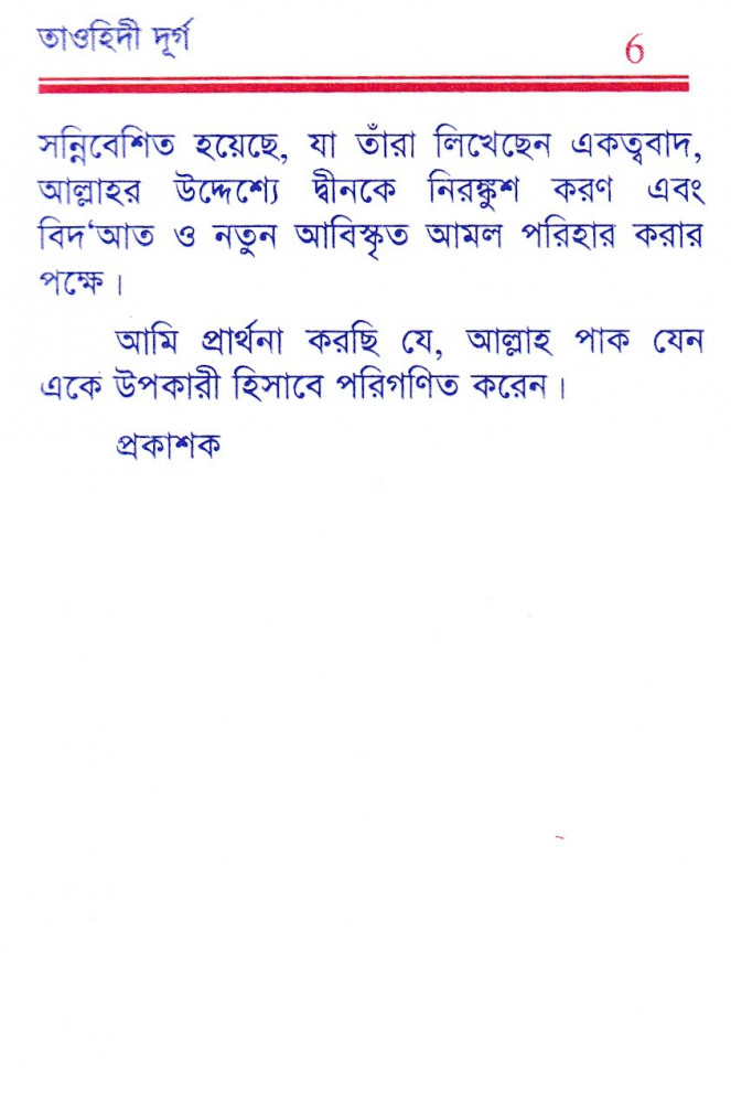 لأجل توحيد الله ـ عزوجل ـ وإقراده بالعبادة خلقت الخليقة ولتحقيقه شرعت كل عبادة، فالتوحيد هو الغاية العظمى والهدف الأسمى والمقصد الأسنى، قال تعالى: ( وما خلقت الجن والأنس إلا ليعبدون) ومن تأمل في حال الكثير اليوم يجد تفلت هذا الأمر من قبلهم في جوانب كثيرة. لذا كان لزاماً علينا أن نسعى إلى إخراج مثل هذا الكتيب الذي يشمل جملة مما كتبه العلماء في التوحيد وإخلاص الدين لله وترك البدع ومحدثات الأمور ـ يقع الكتاب فلي (184) صفحة، باللغة البنغالية.