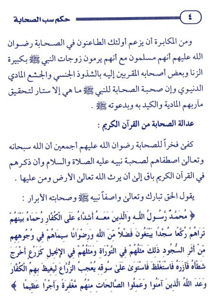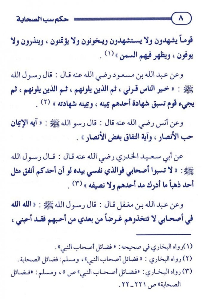 يحوي على حكم سب الصحابة من أقوال الأئمة ابن حجر الهيثمي و ابن تيمية وابن عابدين.