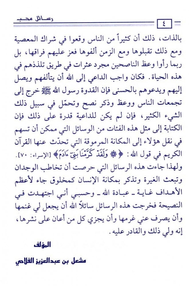 تحوي على رسائل تخاطب الوجدان وتبعث الغيرة وتذكر بمكانة الإنسان كمخلوق جاء لأعظم الأهداف غاية ـ عبادة الله ـ .