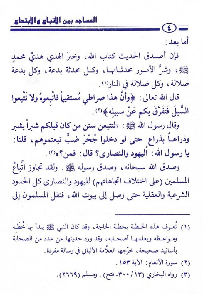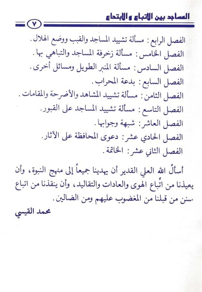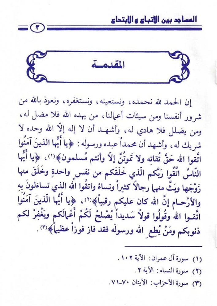يحوي على رسالة المسجد بين الإتباع والإبتداع.