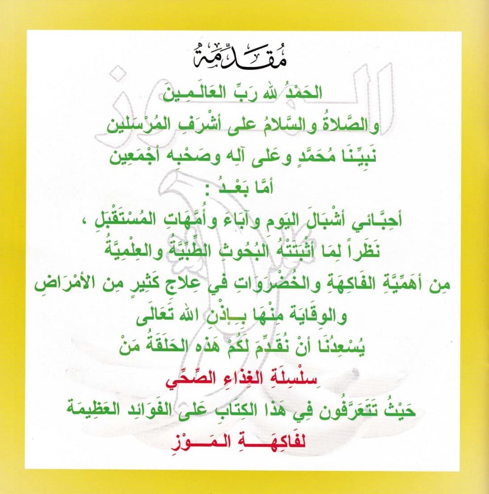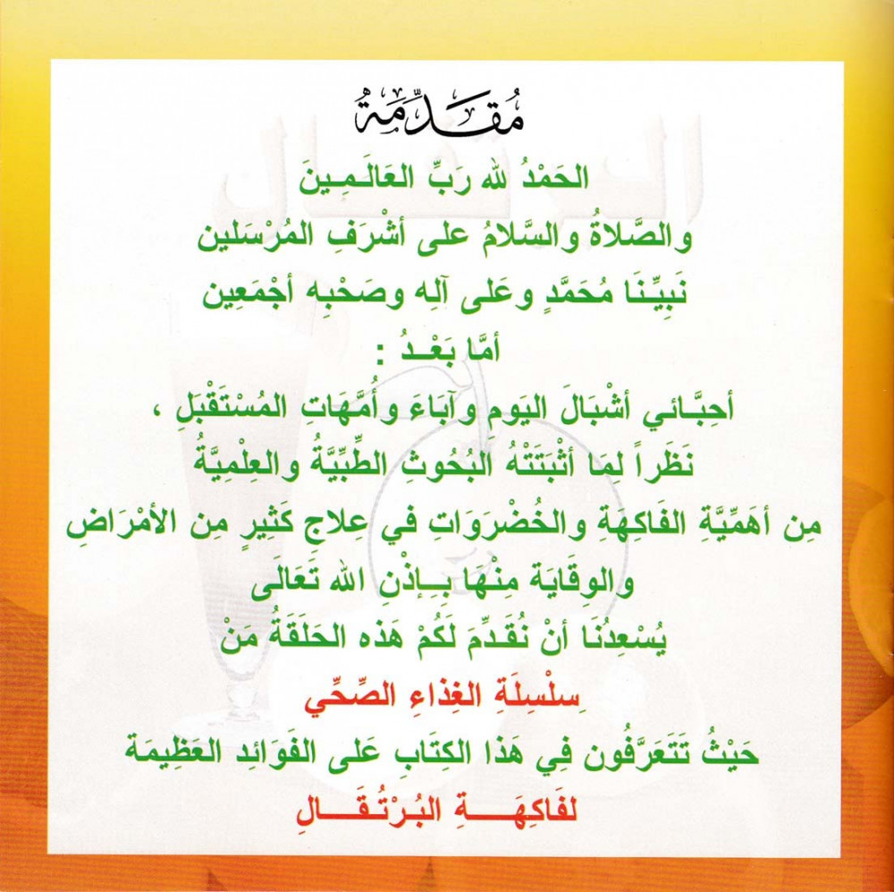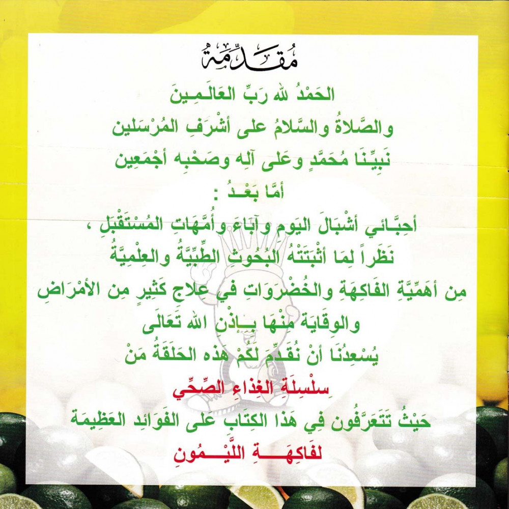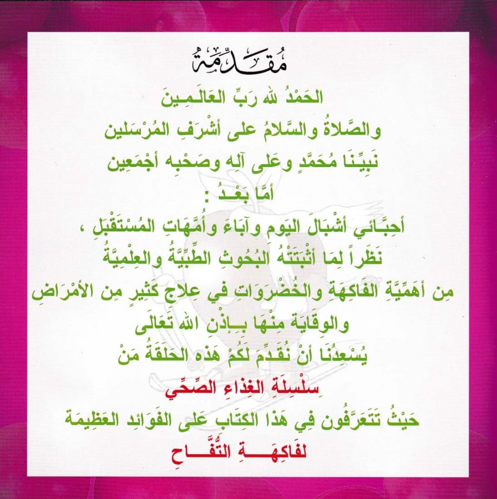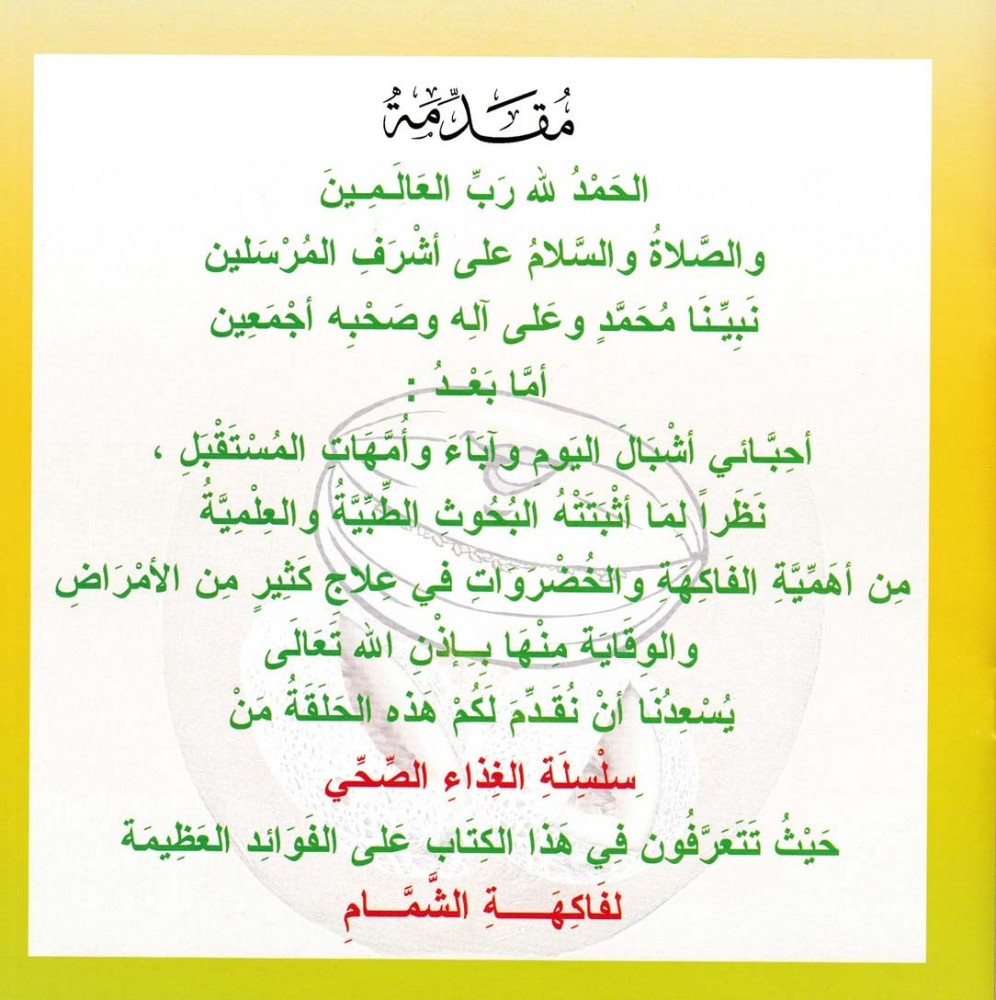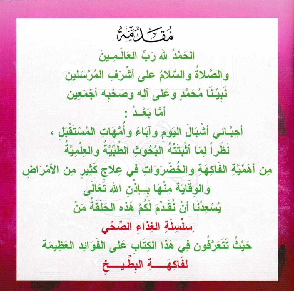 يحوي على عدد 1- 9 من سلسلة الغذاء الصحي، نظراً لما اثبتته البحوث الطبية والعلمية من أهمية الفاكهة والخضروات في علاج كثير من الأمراض والوقاية منها بإذن الله تعالى يسعدنا أن نقدم لكم هذه السلسلة الغذاء الصحي.