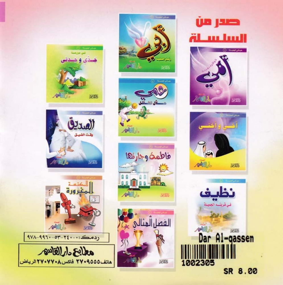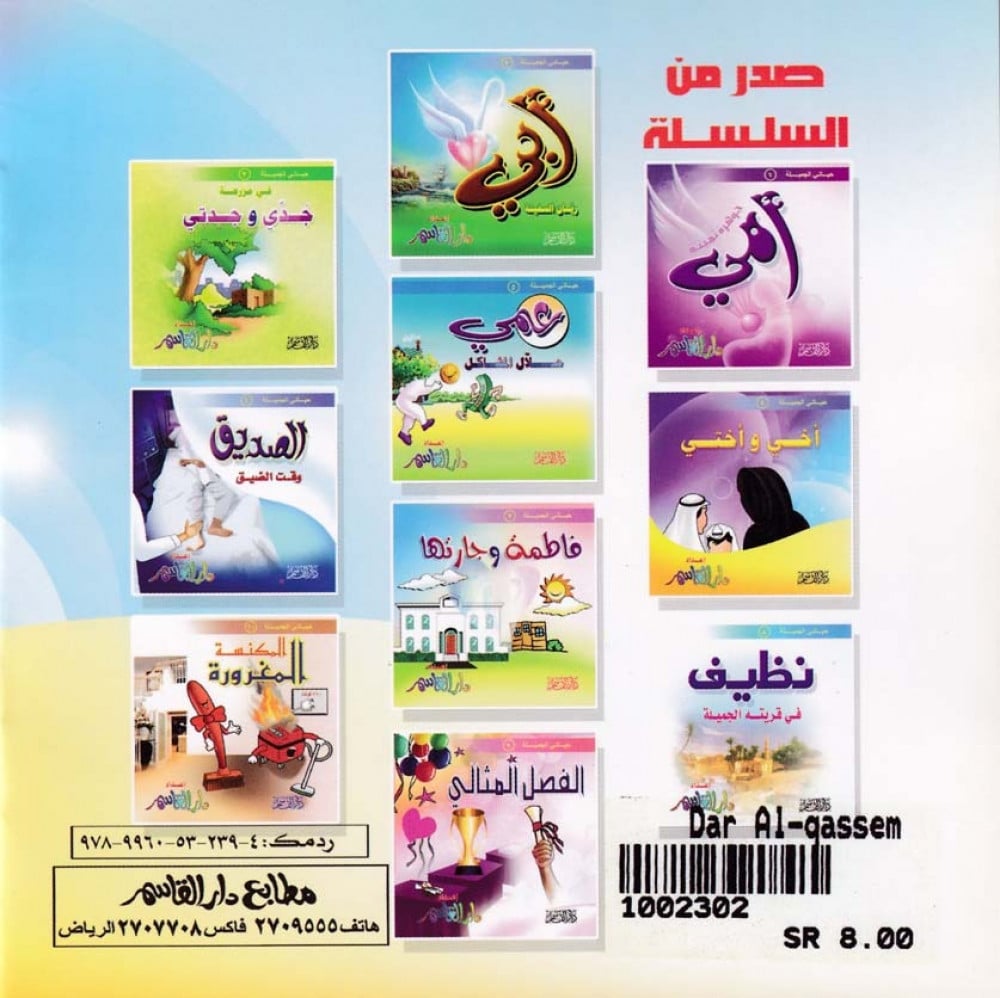 تحوي على عدد 1 - 10 من بر الوالدين، ومعلومات مبسطة قيمة عن أفراد الأسرة من أخي وأختي، وجدي وجدتي، والصديق الوفي، والعم الذي يحل جميع المشاكل، ونظيف في قريته الجميلة، وعن حقوق الجار فاطمة وجارتها، في المرحلة الدراسية في الفصل المثالي، وفي نظافة المنزل تجد المكنسة المغرورة.