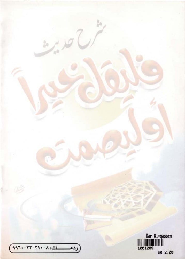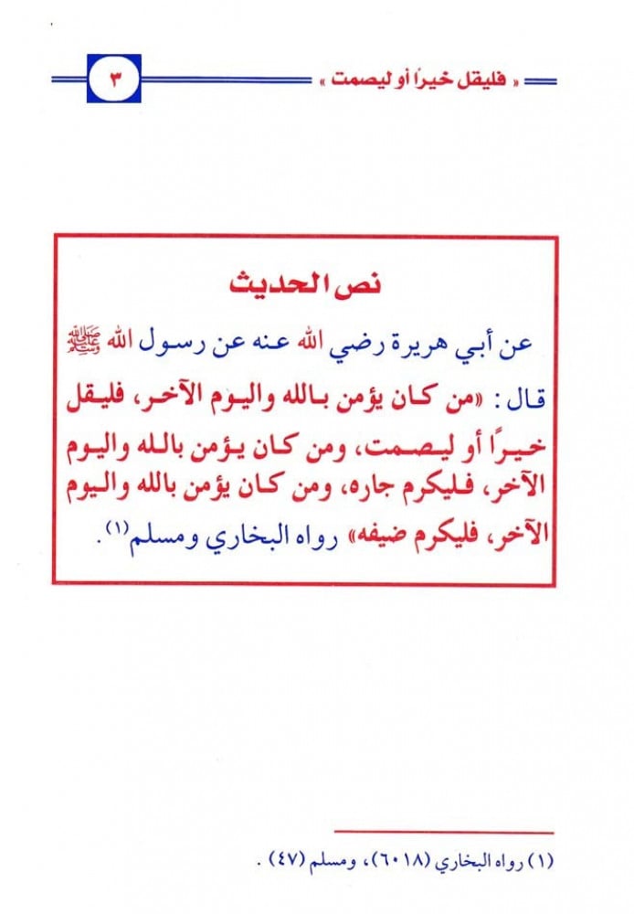 يحوي على شرح حديث فليقل خيراً أو ليصمت، وإكرام الجار ـ وإكرام الضيف.