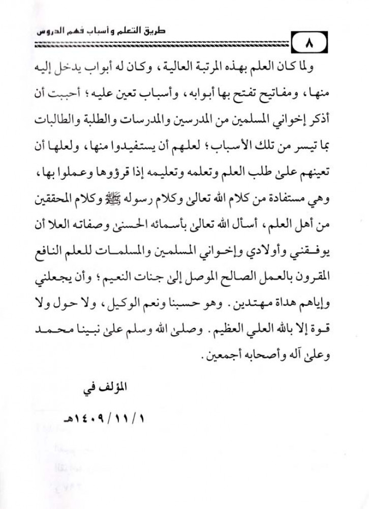 يحوي على وسائل والطرق التعلم وأسباب فهم الدروس.