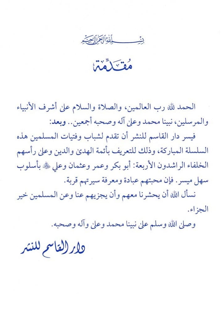 نقدم لشباب وفيتات المسلمين هذه السلة المباركة، وذلك للتعريف بأئمة الهدى والدين وعلى رأسهم الخلفاء الراشدون الأربعة: أبوبكر وعمر وعثمان وعلي رضي الله عنهم بأسلوب سهل ميسر. فإن محبتهم عبادة ومعرفة سيرتهم قربة.