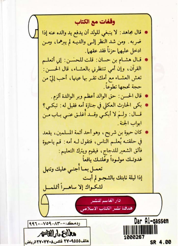 يحوي على بر الوالدين والإحسان إليهما، وإكرامهما وحفظ حقوقهما.