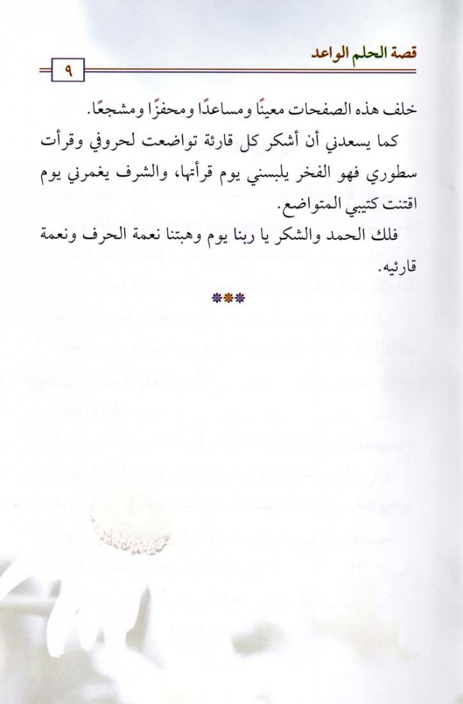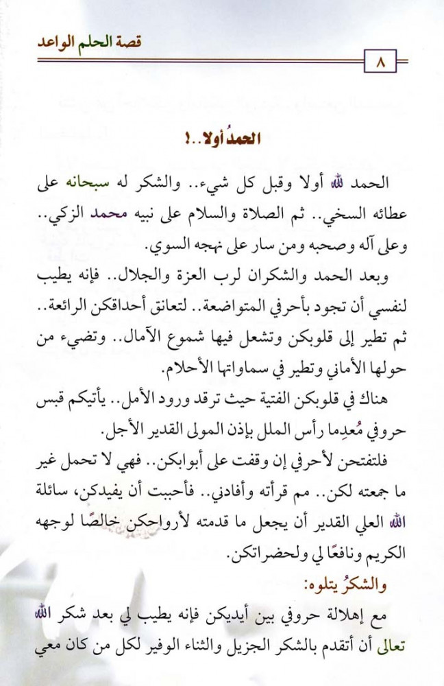 يحوي على قصة تنبض بين فصولها قلوب فتية رقيقة.. تركض في نجود الحياة باحثة عن أسلم طريق للوصل إلى أحلامه،، تلك الزهور الزكية التي تصارع أشواك الحياة لتصرع العواقب وتصنع من إرادتها واقعاً كان يسكن في خيالها هي قصة الحلم الذي يخلد في داخل كل فتاة نقية ولم يرى الواقع منه شيء.