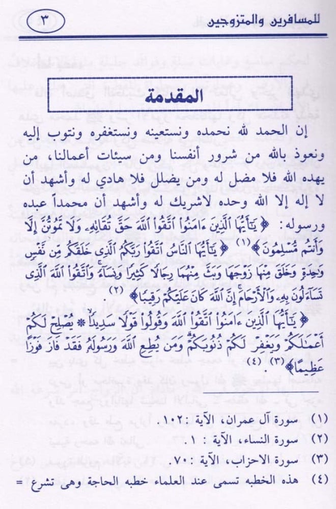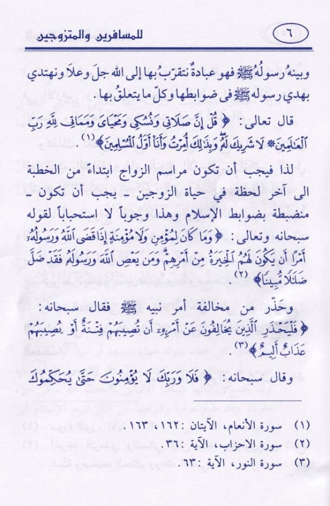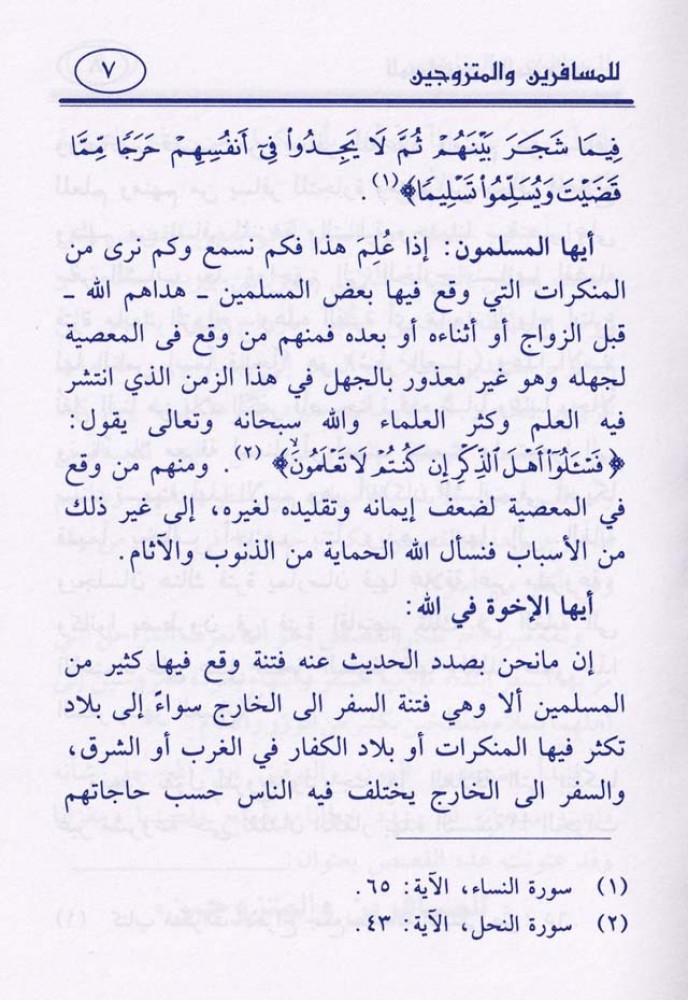 يحوي على إرشادات وتوجيهات للمسافرين والمتزوجين.