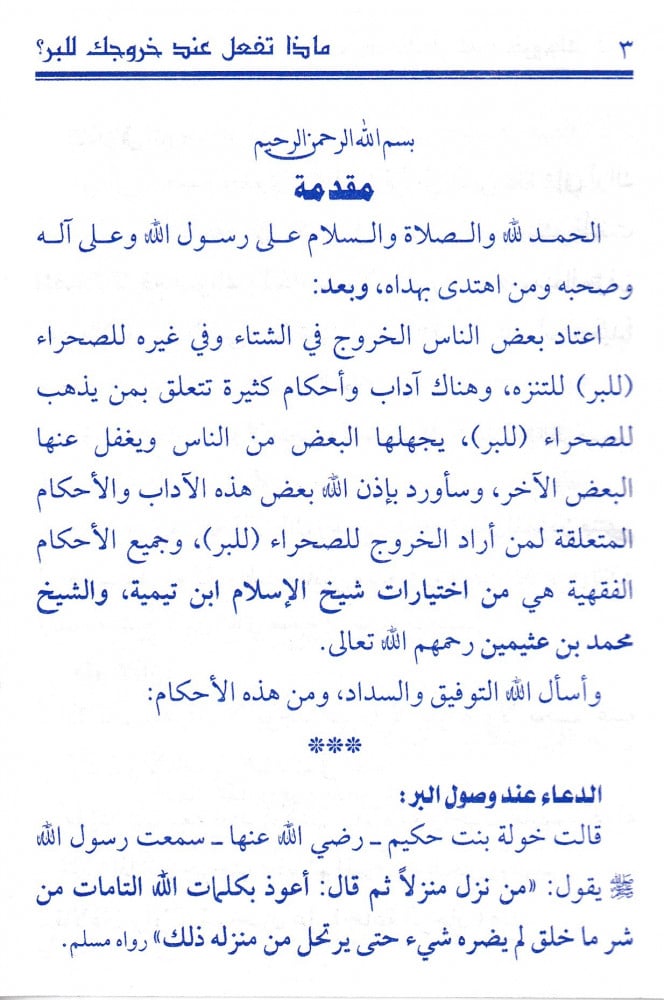 يحوي على إرشادات وتوجيهات لمن أراد الخروج إلى البر، وماذا تفعل عند خروجك للبر.