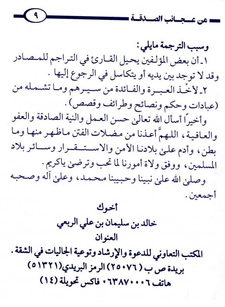 يحوي على عجائب الصدقة.فيه قصص لقوم تصدقوا فأعقبهم الله تعالى خيراً.