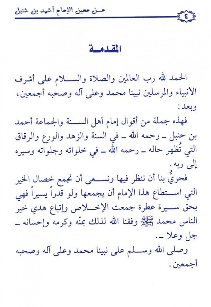 يحوي على جملة من أقوال إمام أهل السنة والجماعة أحمد بن حنبل رحمه الله في السنة والزهد والورع والرقائق. التي تظهر حاله ـ رحمه الله في خلواته وجلواته وسيره إلى ربه.
