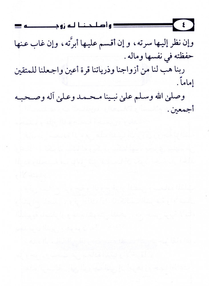 وهذه الرسالة إلى الزوجة طيبة المنبت التي ترجو لقاء الله عزوجل وتبحث عن سعادة الدنيا والآخرة، إلى الزوجة التي إن أمرها زوجها أطاعته، وإن نظر إليها سرته، وإن أقسم عليها أبرته، وإن غاب عنها حفظته في نفسها وماله.