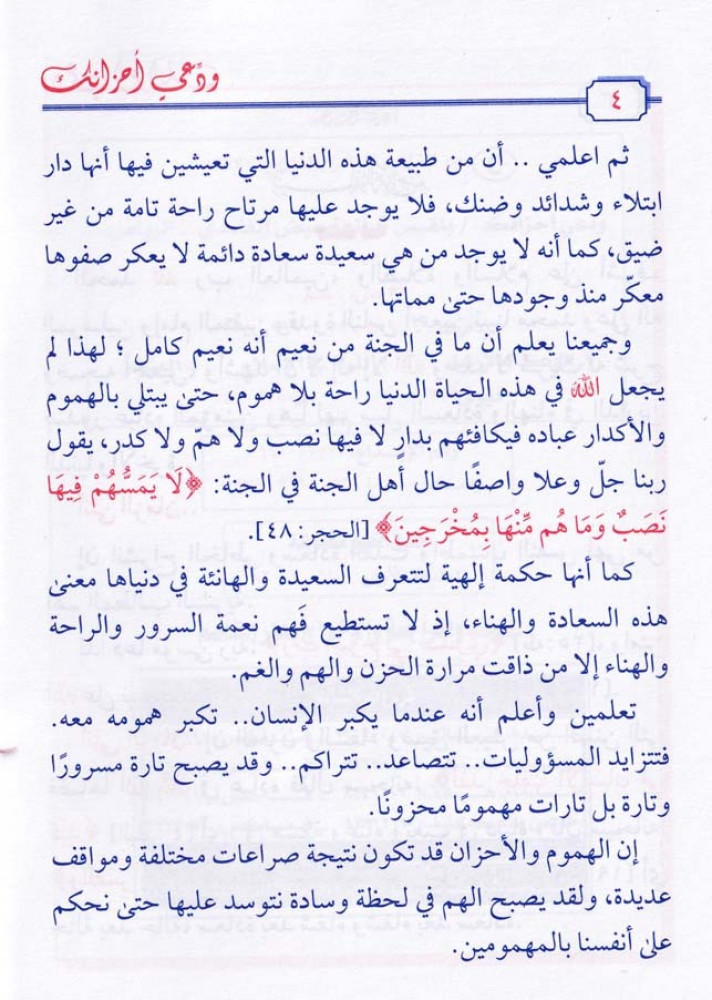 يحوي على طرق التعامل مع همومنا وأحزاننا، لعلنا نقطع شوطاً من مشوار حياتنا ونحن على بصيرة بهذا الشعور والتعامل معه بشكل صحيح.