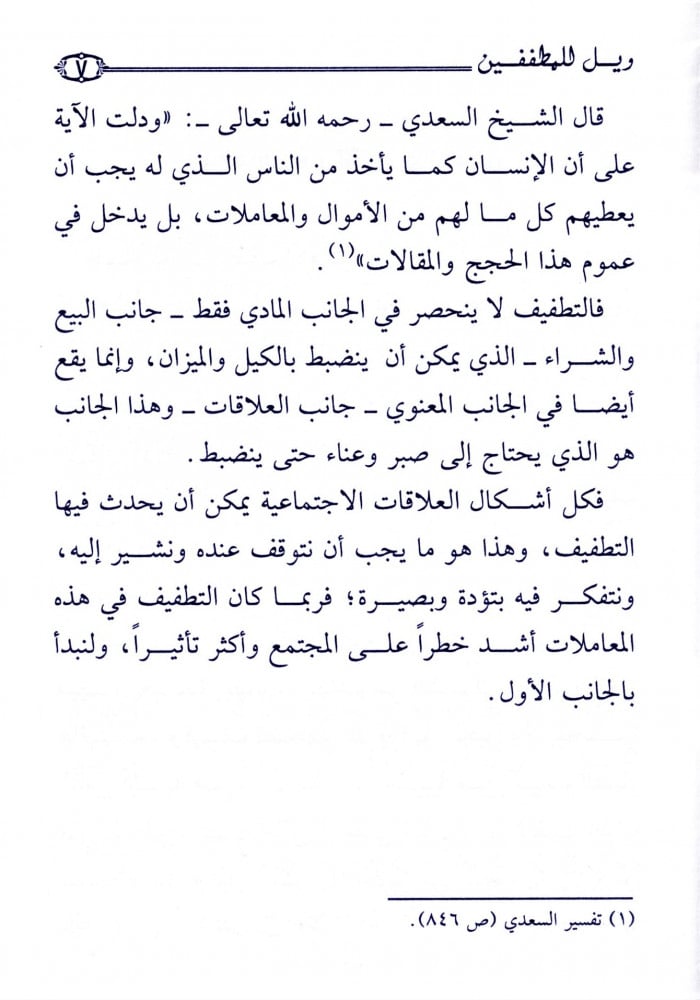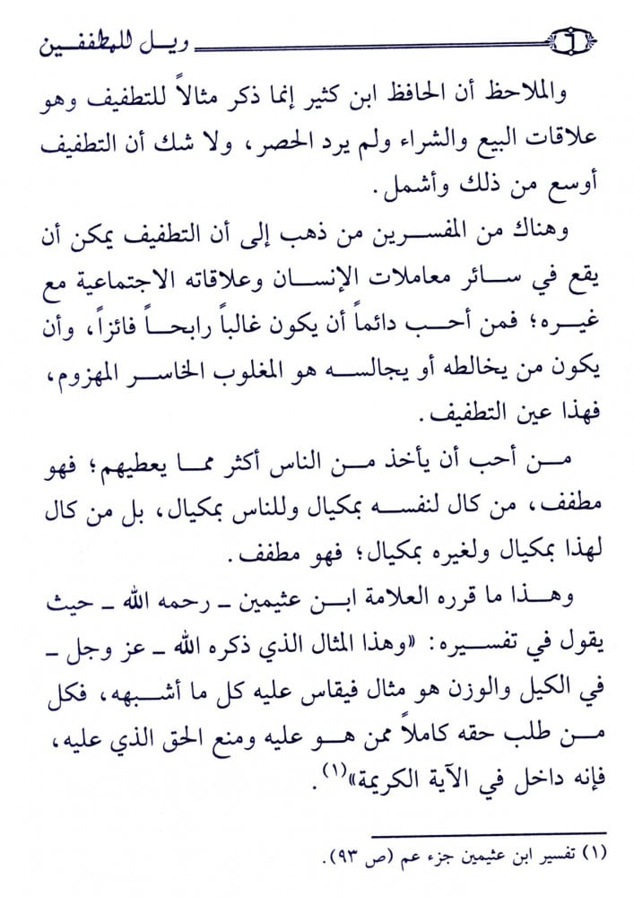 فكل أشكال العلاقات الاجتماعية يمكن أن يحدث فيها التطفيف، وهذا هو ما يجب أن نتوقف عنده ونشير إليه، ونتفكر فيه بتؤدة وبصيرة؛ فربما كان التطفيف في هذه المعاملات أشد خطراً على المجتمع وأكثر تأثيراً.