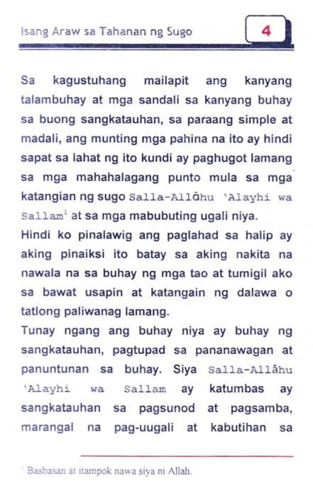 يقع الكتاب في (144) صفحة باللغة الفلبينية، وقد ترجم إلى اللغات.